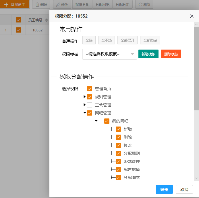 我们可以授权不同的员工不同的网吧管理权限。